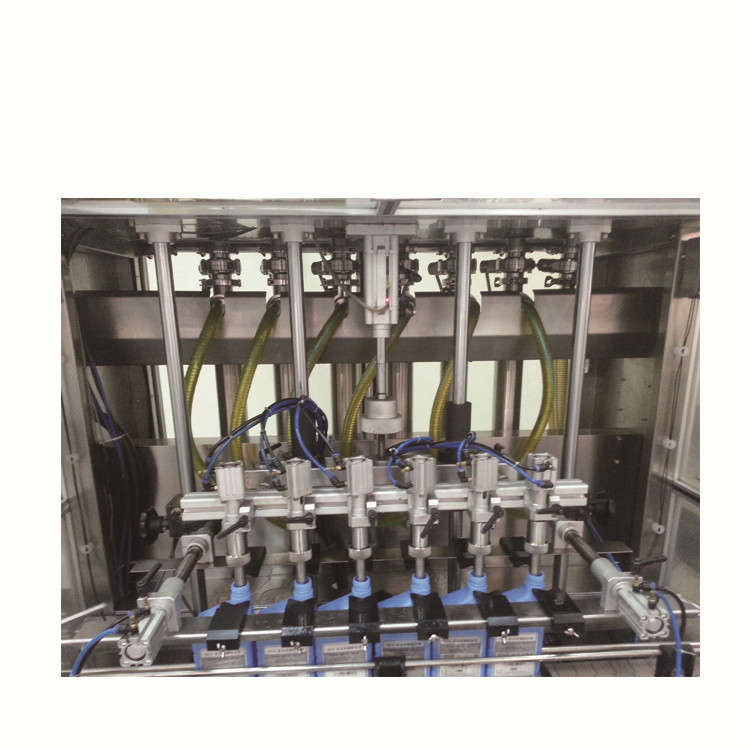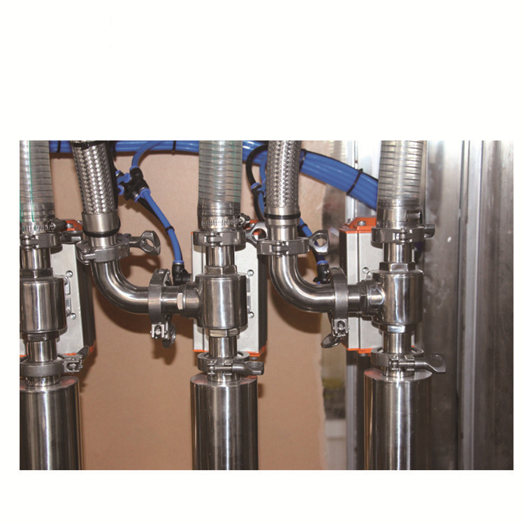 3. Ele pode atender à necessidade de maior produtividade com a adoção de alimentação de garrafa com dois trilhos, enchimento com dois trilhos e tampa de dois bicos, parafusando ou rolando e pressionando. Esta máquina tem alta precisão de enchimento e pode ser desmontada e esterilizada convenientemente, adotando uma bomba de pistão de aço inoxidável de junção rápida.